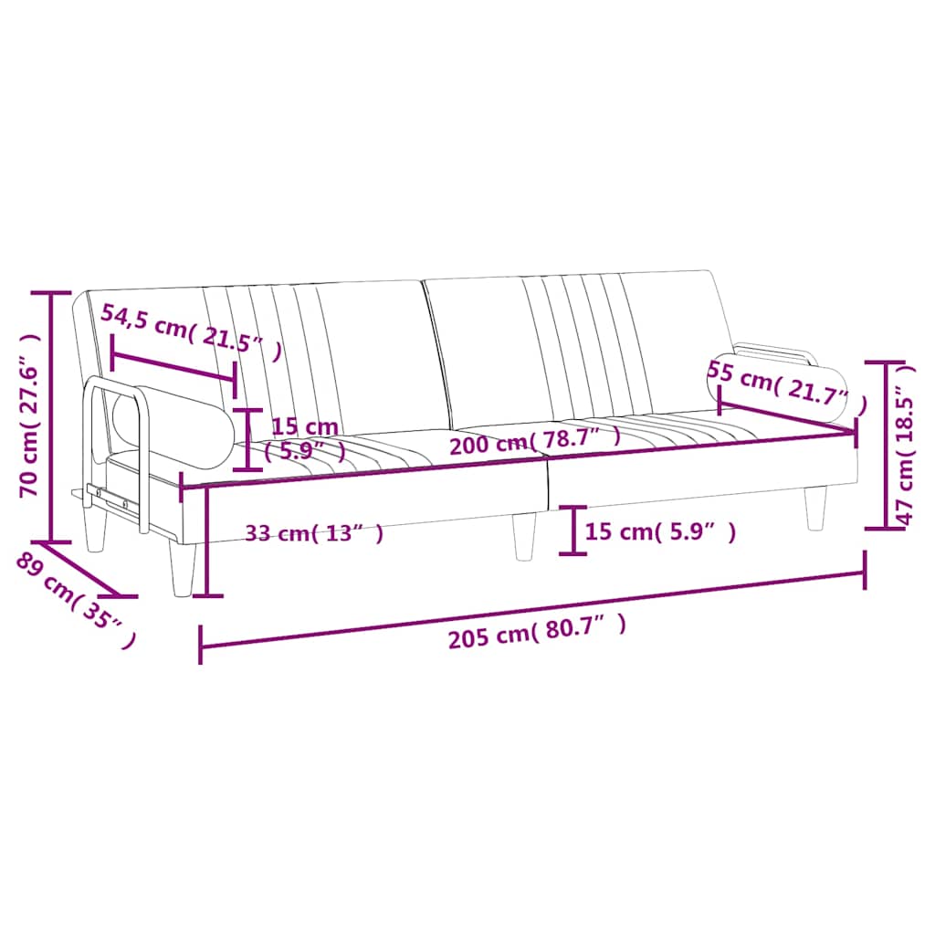 Ce canapé-lit est parfait pour accueillir des invités pendant la nuit tout en offrant un espace confortable pour s'asseoir pendant la journée. Canapé velours : le velours est un tissu doux et luxueux qui se reconnaît à son tas dense de fibres uniformément coupées qui ont une touche lisse. Le tissu en velours présente un toucher doux distinctif, ce qui le rend confortable au toucher. Dossier réglable : vous pouvez pousser les deux dossiers séparés du canapé-lit de jour partiellement ou complètement vers le bas pour créer un endroit idéal pour une sieste ou un lit double. Expérience d'assise confortable : le canapé-lit est très confortable avec des sièges, des accoudoirs et des dossiers bien rembourrés.Oreillers pratiques : ces oreillers non seulement embellissent votre décor, mais peuvent également ajouter un confort supplémentaire lorsque vous êtes assis ou allongé. Cadre robuste et stable : le cadre en contreplaqué du canapé-lit assure robustesse et stabilité. Bon à savoir :Pour faciliter au maximum le montage, chaque produit est livré avec des instructions.