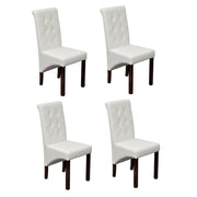 Cet ensemble de 4 chaises de salle à manger, confortables et grandes, a un design antique et les chaises ont des sièges et des dossiers ergonomiques. Les jambes sont faites de bois solide dans une couleur brun foncé vernie et les coins sont arrondis pour la sûreté. Les chaises peuvent être entretenues et nettoyées facilement. Les sièges et le dossier de ces chaises sont rembourrés de cuir synthétique durable.