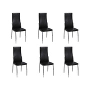 Ces 6 chaises de salle à manger modernes ont un design ergonomique pour augmenter le confort. Ces chaises de salle à manger confortables ont une construction de haute qualité et robuste. Les pieds sont en chrome et les sièges sont faits de cuir synthétique durable qui peut être nettoyé facilement.