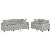 Cet ensemble de canapés est un excellent endroit pour discuter, lire, regarder la télévision ou simplement vous détendre. Il est destiné à être un point central de votre maison. Microfibre résistant : le microfibre est un tissu synthétique composé de fibres ultra-fines, particulièrement résistantes aux taches. Le tissu en microfibre est un excellent choix pour le rembourrage des meubles en raison de sa durabilité et de son nettoyage facile.Structure robuste et stable : la structure en contreplaqué et en métal du canapé assure robustesse et stabilité.Expérience d'assise confortable : le canapé est très confortable avec le siège, les accoudoirs et les oreillers de dossier bien rembourrés.Oreillers de canapé pratiques : ces oreillers décoratifs carrés non seulement embellissent votre décor mais ils peuvent également apporter un confort supplémentaire lorsque vous êtes assis ou allongé.