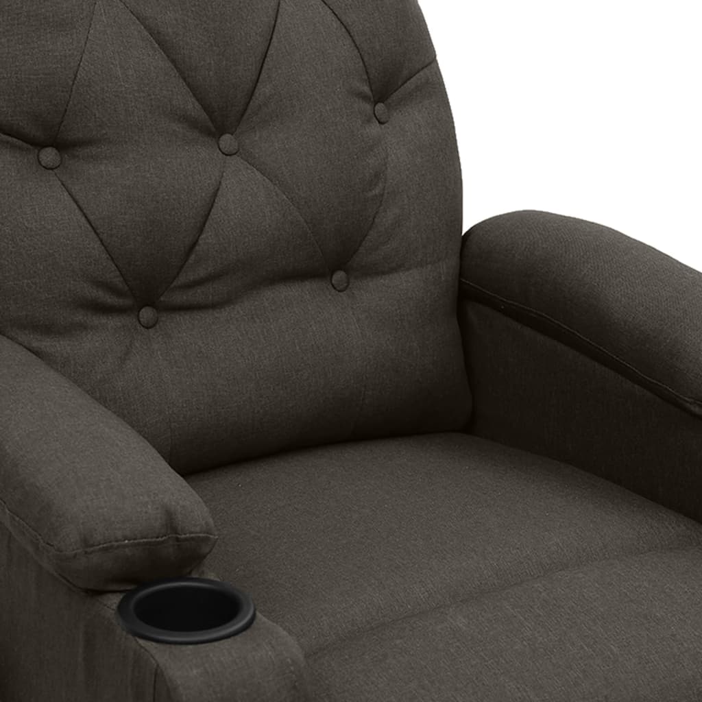 Asseyez-vous et détendez-vous dans ce fauteuil de massage très confortable ! Fonction d'inclinaison manuelle : le fauteuil inclinable est spécialement conçu avec 3 positions d'inclinaison afin que vous puissiez régler manuellement le dossier et le repose-pieds selon votre confort.Fonction de levage électrique : ce fauteuil inclinable pour personnes âgées est équipé d'un moteur électrique pour la fonction de levage. Grâce à la fonction qui pousse toute la chaise vers le haut, vous pouvez facilement vous tenir debout sans stresser votre dos et vos genoux grâce à la commande manuelle à 2 boutons.Fonction de vibration : les 6 points de massage vous permettent de faire l'expérience d'un massage mieux ciblé. De plus, la télécommande incluse vous permet de choisir différents programmes de massage. La fonction de massage est alimentée par le connecteur USB, mais la source d'alimentation USB 5V certifiée n'est pas incluse.Expérience d'assise confortable : le siège, le dossier et les larges accoudoirs rembourrés épais recouverts de tissu procurent une sensation confortable et chaleureuse, vous permettant de vous sentir enveloppé lorsque vous êtes assis. Le tissu présente un aspect simple et épuré, et est respirant et durable.Cadre solide et stable : le cadre en bois et en métal offre une structure solide et une grande stabilité. Ce fauteuil inclinable est confortable et durable.