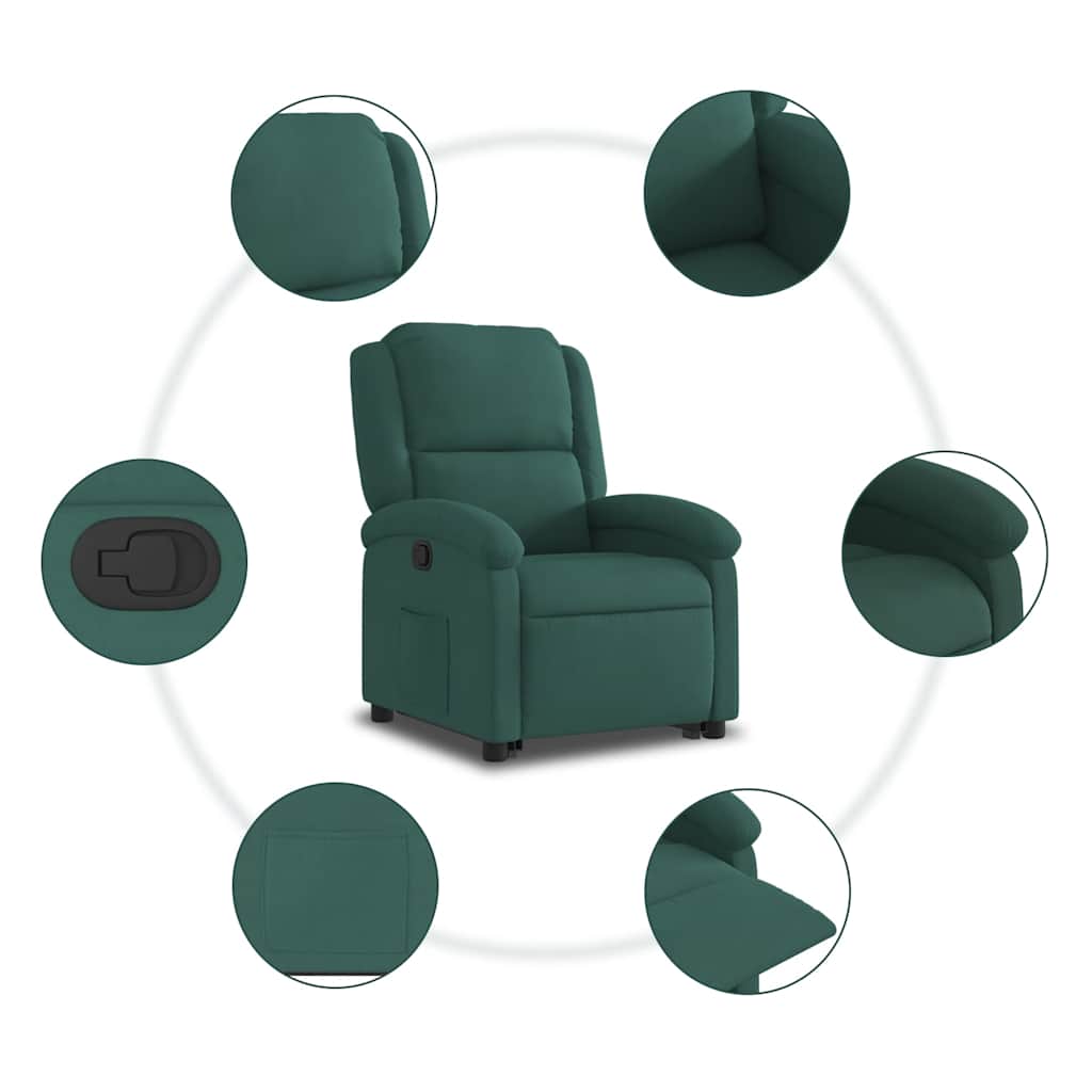 Asseyez-vous et détendez-vous dans ce fauteuil inclinable très confortable ! Fonction de levage électrique : ce fauteuil inclinable pour personnes âgées est équipé d'un moteur électrique pour la fonction de levage. Grâce à la fonction qui pousse toute la chaise vers le haut, vous pouvez facilement vous tenir debout sans stresser votre dos et vos genoux en appuyant simplement sur le bouton.Fonction d'inclinaison manuelle : ce fauteuil inclinable est doté d'une poignée du côté droit. Vous pouvez régler manuellement le repose-pieds et le dossier dans n'importe quelle position selon votre confort en tirant simplement sur la poignée. Cette fonction permet une inclinaison maximale de 135 degrés. De plus, le dossier peut revenir rapidement à sa position d'origine en tirant simplement sur la poignée.Expérience d'assise confortable : le siège, le dossier et les larges accoudoirs rembourrés épais recouverts de velours procurent une sensation confortable et chaleureuse, vous faisant vous sentir enlacé lorsque vous êtes assis. Le velours est un tissu doux et confortable qui est agréable sur la peau.Poche latérale pratique : ce fauteuil est doté d'une poche latérale pour vous permettre de garder vos objets essentiels à portée de main.Cadre solide et stable : le cadre en bois et en métal offre une structure solide et une grande stabilité. Ce fauteuil inclinable est confortable et durable.