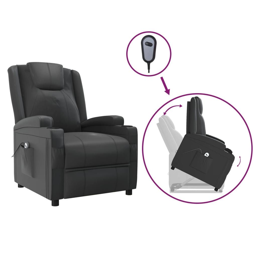 Asseyez-vous et détendez-vous dans ce fauteuil très confortable ! Fonction d'inclinaison manuelle : le fauteuil inclinable est spécialement conçu avec 3 positions d'inclinaison afin que vous puissiez régler manuellement le dossier et le repose-pieds selon votre confort.Fonction de levage électrique : ce fauteuil inclinable pour personnes âgées est équipé d'un moteur électrique pour la fonction de levage. Grâce à la fonction qui pousse toute la chaise vers le haut, vous pouvez facilement vous tenir debout sans stresser votre dos et vos genoux grâce à la commande manuelle à 2 boutons.Expérience de siège confortable : le siège, le dossier et les larges accoudoirs rembourrés épais recouverts de similicuir procurent une sensation confortable et chaleureuse, vous faisant vous sentir enlacé lorsque vous êtes assis. Le simili cuir est un matériau très résistant. Il est résistant aux taches, ce qui le rend facile à nettoyer avec un chiffon humide. La surface lisse donne également un aspect luxueux et la beauté du cuir véritable.Cadre solide et stable : le cadre en bois et en métal offre une structure solide et une grande stabilité. Ce fauteuil inclinable est confortable et durable.
