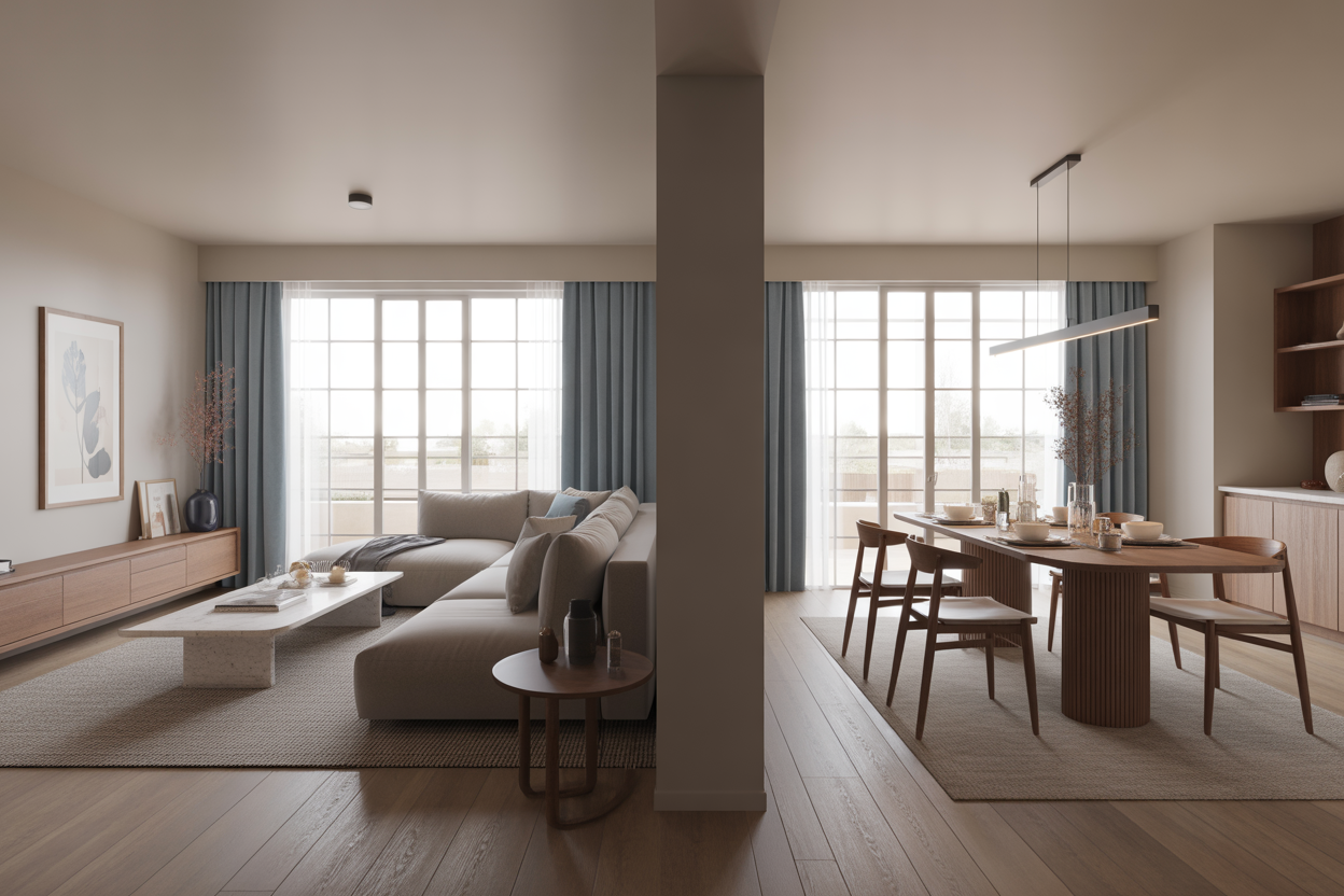 La première étape pour une décoration intérieure salon salle à manger réussie est de structurer l'espace sans le fermer.