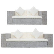 Cet ensemble de canapés en rotin associe style et fonctionnalité et sera un excellent ajout à votre maison. Grâce au matériau de rotin véritable, l'ensemble est facile à nettoyer, résistant à l'usure et adapté à une utilisation quotidienne. Il dispose d'un cadre en bois robuste, très durable et stable. Les coussins épais de dossier et de siège sont considérablement confortables et également lavables grâce à leurs housses amovibles. En outre, les accoudoirs larges s'ajoutent au confort de votre assise. La livraison inclut un canapé à 2 places, un canapé à 3 places, 5 coussins de siège, 4 coussins de dossier et 4 oreillers.