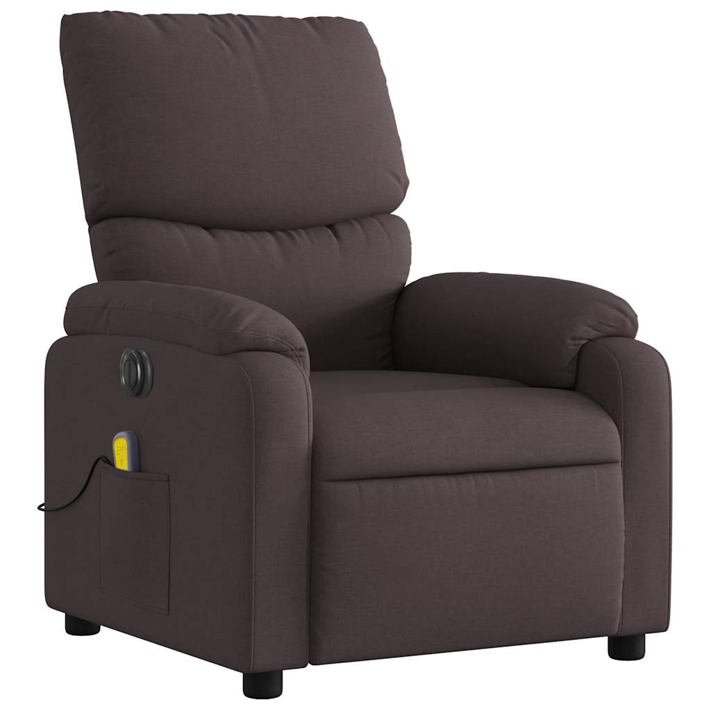 Asseyez-vous et détendez-vous dans ce fauteuil inclinable de massage électrique très confortable ! Fonction d'inclinaison électrique : ce fauteuil inclinable est équipé d'un moteur électrique qui permet de régler automatiquement le repose-pied et le dossier dans n'importe quelle position, selon votre confort, en appuyant simplement sur le bouton situé sur le côté du fauteuil. Cette fonction permet une inclinaison maximale de 135 degrés. En outre, le dossier peut revenir automatiquement à sa position d'origine par une simple pression sur le bouton.Fonction de vibration : les 6 points de massage vous permettent de faire l'expérience d'un massage mieux ciblé. De plus, la télécommande incluse vous permet de choisir différents programmes de massage. La fonction de massage est alimentée par le connecteur USB qui nécessite une source d'alimentation USB certifiée de 5 V (non fournie).Expérience d'assise confortable : le siège, le dossier et les larges accoudoirs bien rembourrés recouverts de tissu procurent une sensation confortable et chaleureuse, vous permettant de vous sentir enveloppé lorsque vous êtes assis. Le tissu présente un aspect simple et épuré et est respirant et durable.Poche latérale pratique : ce fauteuil est doté d'une poche latérale pour ranger votre télécommande ou garder vos objets essentiels à portée de main.Cadre solide et stable : le cadre en bois et en métal offre une structure solide et une grande stabilité. Ce fauteuil inclinable est confortable et durable.