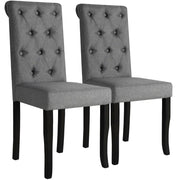 Notre ensemble de chaises à manger en bois massif, avec un design élégant et intemporel, sera un excellent accessoire pour votre cuisine ou salle à manger. Grâce au revêtement en tissu doux au toucher et au rembourrage en mousse, les chaises sont très confortables. Les boutons décoratifs sur le dossier ajoutent un joli détail classique au design. La livraison comprend 2 chaises de salle à manger. L'assemblage est facile.