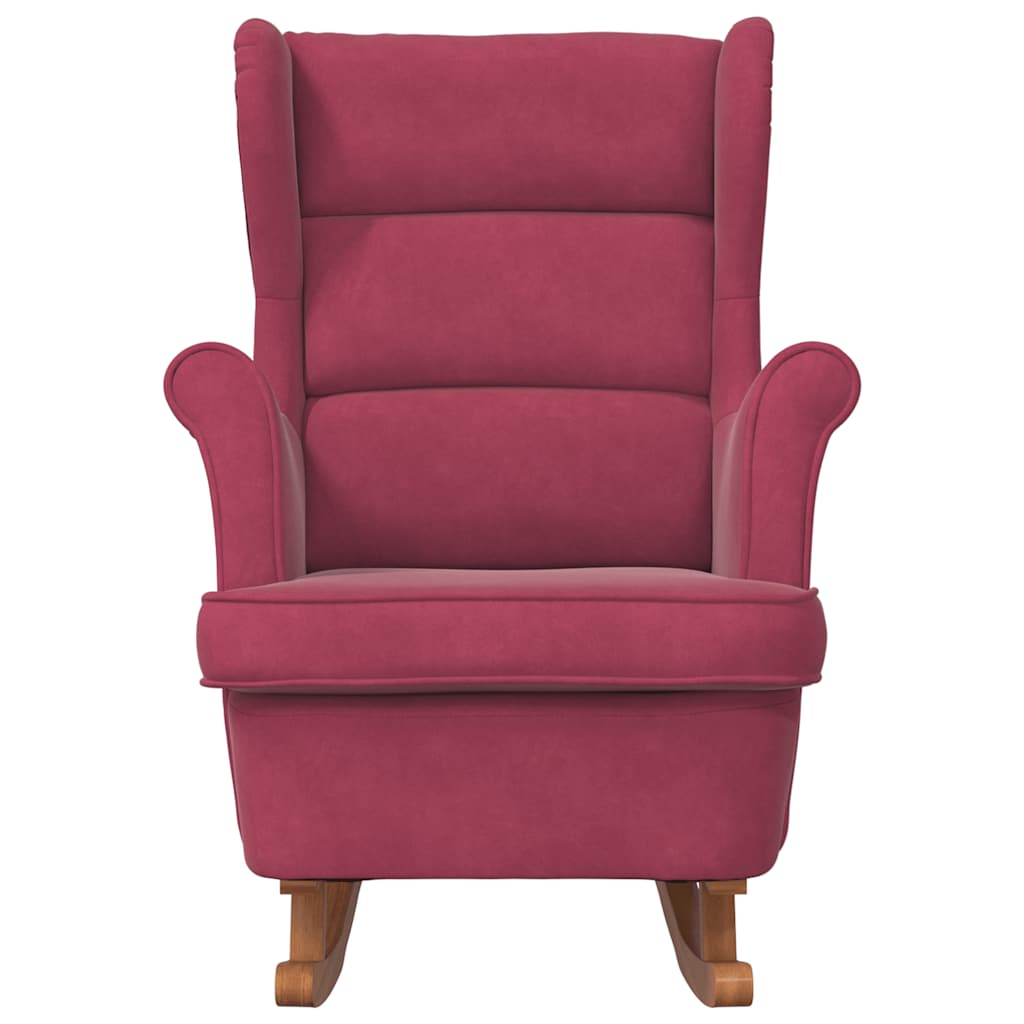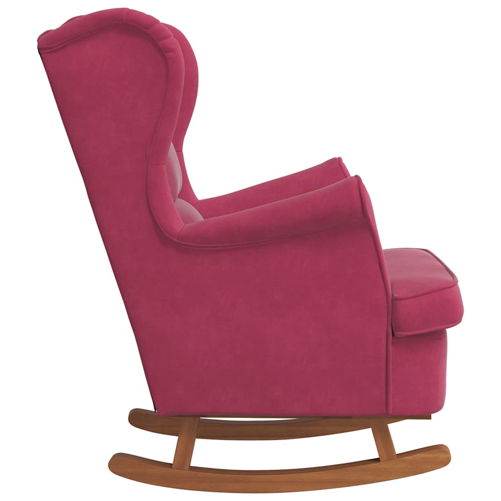 Ce fauteuil à bascule est une excellente combinaison de design élégant et de fonctionnalité. Le mélange de savoir-faire et de matériaux de qualité fait de ce fauteuil sur mesure une pièce essentielle de votre décoration intérieure. Grâce à sa mousse rembourrée recouverte de velours doux au toucher, vous pourrez profiter d'un confort optimal pendant votre temps d'assise. De plus, cette chaise de salon est soutenue par des pieds à bascule en bois d'hévéa massif qui assurent une stabilité supplémentaire.