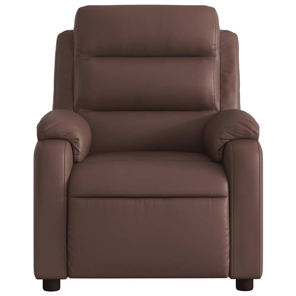 Asseyez-vous et détendez-vous dans ce fauteuil inclinable de massage électrique très confortable ! Fonction d'inclinaison électrique : ce fauteuil inclinable est équipé d'un moteur électrique qui permet de régler automatiquement le repose-pied et le dossier dans n'importe quelle position, selon votre confort, en appuyant simplement sur le bouton situé sur le côté du fauteuil. Cette fonction permet une inclinaison maximale de 135 degrés. En outre, le dossier peut revenir automatiquement à sa position d'origine par une simple pression sur le bouton.Fonction de vibration : les 6 points de massage vous permettent de faire l'expérience d'un massage mieux ciblé. De plus, la télécommande incluse vous permet de choisir différents programmes de massage. La fonction de massage est alimentée par le connecteur USB qui nécessite une source d'alimentation USB certifiée de 5 V (non fournie).Expérience de siège confortable : le siège, le dossier et les larges accoudoirs rembourrés épais recouverts de similicuir procurent une sensation confortable et chaleureuse, vous faisant vous sentir enlacé lorsque vous êtes assis. Le simili cuir est un matériau très résistant. Il est résistant aux taches, ce qui le rend facile à nettoyer avec un chiffon humide. La surface lisse donne également un aspect luxueux et la beauté du cuir véritable.Poche latérale pratique : ce fauteuil est doté d'une poche latérale pour ranger votre télécommande ou garder vos objets essentiels à portée de main.Cadre solide et stable : le cadre en bois et en métal offre une structure solide et une grande stabilité. Ce fauteuil inclinable est confortable et durable.