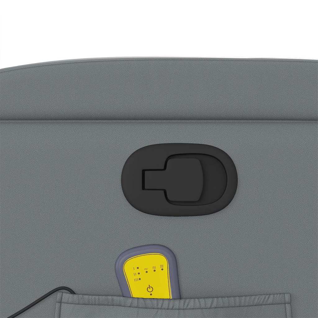 Asseyez-vous et détendez-vous dans ce fauteuil inclinable de massage très confortable ! Fonction d'inclinaison manuelle : ce fauteuil inclinable est doté d'une poignée du côté droit. Vous pouvez régler manuellement le repose-pieds et le dossier dans n'importe quelle position selon votre confort en tirant simplement sur la poignée. Cette fonction permet une inclinaison maximale de 135 degrés. De plus, le dossier peut revenir rapidement à sa position d'origine en tirant simplement sur la poignée.Fonction de vibration : les 6 points de massage vous permettent de faire l'expérience d'un massage mieux ciblé. De plus, la télécommande incluse vous permet de choisir différents programmes de massage. La fonction de massage est alimentée par le connecteur USB, mais la source d'alimentation USB 5V certifiée n'est pas incluse.Expérience de siège confortable : le siège, le dossier et les larges accoudoirs rembourrés épais recouverts de similicuir procurent une sensation confortable, vous faisant vous sentir enlacé lorsque vous êtes assis. Le similicuir est un matériau très résistant. Il est résistant aux taches, ce qui le rend facile à nettoyer avec un chiffon humide. La surface lisse donne également un aspect luxueux et la beauté du cuir véritable.Porte-gobelets et poche latérale pratiques : ce fauteuil dispose de deux porte-gobelets pratiques pour vos boissons et d'une poche latérale pour votre télécommande ou pour garder vos objets essentiels à portée de main.Cadre solide et stable : le cadre en bois et en métal offre une structure solide et une grande stabilité. Ce fauteuil inclinable est confortable et durable.