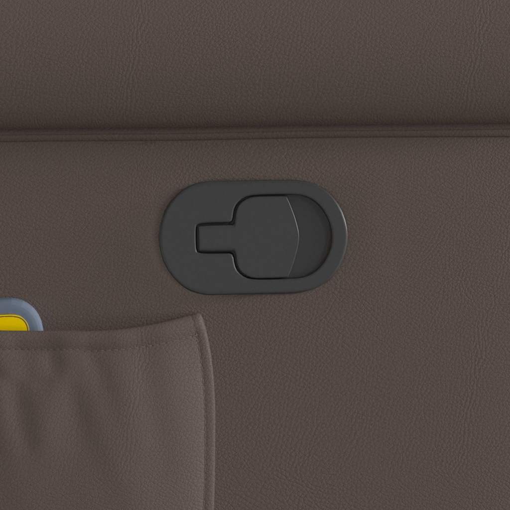 Asseyez-vous et détendez-vous dans ce fauteuil inclinable de massage très confortable ! Fonction d'inclinaison manuelle : ce fauteuil inclinable est doté d'une poignée du côté droit. Vous pouvez régler manuellement le repose-pieds et le dossier dans n'importe quelle position selon votre confort en tirant simplement sur la poignée. Cette fonction permet une inclinaison maximale de 135 degrés. De plus, le dossier peut revenir rapidement à sa position d'origine en tirant simplement sur la poignée.Fonction de vibration : les 6 points de massage vous permettent de faire l'expérience d'un massage mieux ciblé. De plus, la télécommande incluse vous permet de choisir différents programmes de massage. La fonction de massage est alimentée par le connecteur USB, mais la source d'alimentation USB 5V certifiée n'est pas incluse.Expérience de siège confortable : le siège, le dossier et les larges accoudoirs rembourrés épais recouverts de similicuir procurent une sensation confortable et chaleureuse, vous faisant vous sentir enlacé lorsque vous êtes assis. Le simili cuir est un matériau très résistant. Il est résistant aux taches, ce qui le rend facile à nettoyer avec un chiffon humide. La surface lisse donne également un aspect luxueux et la beauté du cuir véritable.Poche latérale pratique : ce fauteuil est doté d'une poche latérale pour ranger votre télécommande ou garder vos objets essentiels à portée de main.Cadre solide et stable : le cadre en bois et en métal offre une structure solide et une grande stabilité. Ce fauteuil inclinable est confortable et durable.