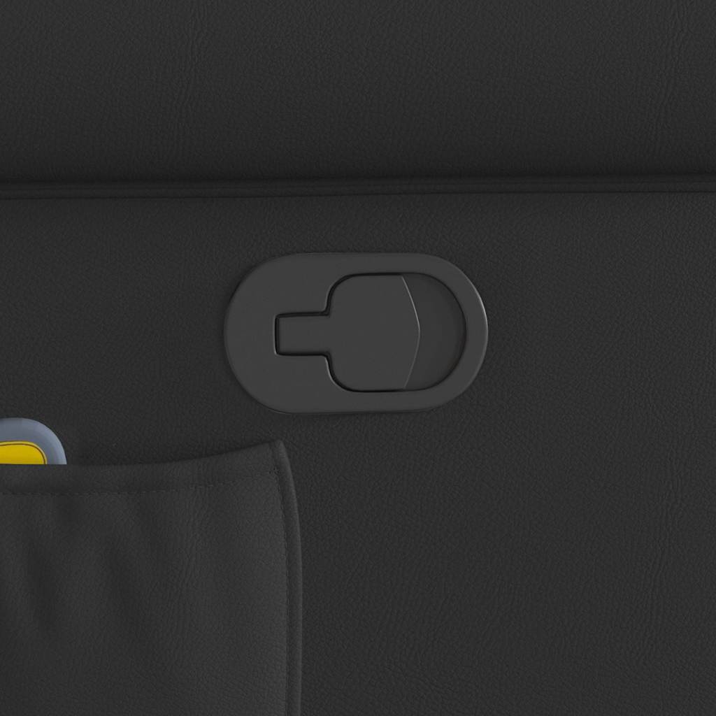 Asseyez-vous et détendez-vous dans ce fauteuil inclinable de massage très confortable ! Fonction d'inclinaison manuelle : ce fauteuil inclinable est doté d'une poignée du côté droit. Vous pouvez régler manuellement le repose-pieds et le dossier dans n'importe quelle position selon votre confort en tirant simplement sur la poignée. Cette fonction permet une inclinaison maximale de 135 degrés. De plus, le dossier peut revenir rapidement à sa position d'origine en tirant simplement sur la poignée.Fonction de vibration : les 6 points de massage vous permettent de faire l'expérience d'un massage mieux ciblé. De plus, la télécommande incluse vous permet de choisir différents programmes de massage. La fonction de massage est alimentée par le connecteur USB, mais la source d'alimentation USB 5V certifiée n'est pas incluse.Expérience de siège confortable : le siège, le dossier et les larges accoudoirs rembourrés épais recouverts de similicuir procurent une sensation confortable et chaleureuse, vous faisant vous sentir enlacé lorsque vous êtes assis. Le simili cuir est un matériau très résistant. Il est résistant aux taches, ce qui le rend facile à nettoyer avec un chiffon humide. La surface lisse donne également un aspect luxueux et la beauté du cuir véritable.Poche latérale pratique : ce fauteuil est doté d'une poche latérale pour ranger votre télécommande ou garder vos objets essentiels à portée de main.Cadre solide et stable : le cadre en bois et en métal offre une structure solide et une grande stabilité. Ce fauteuil inclinable est confortable et durable.