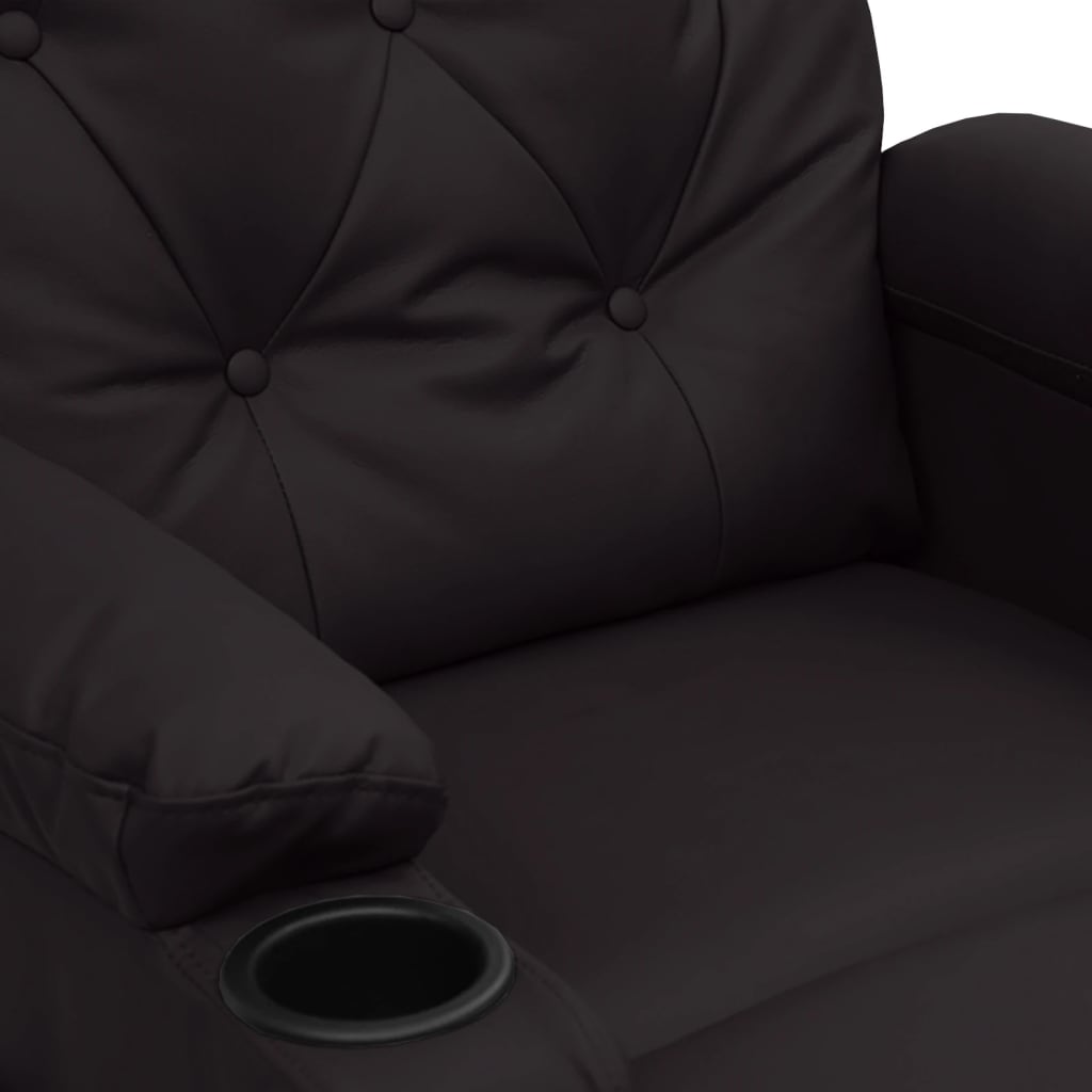 Asseyez-vous et détendez-vous dans ce fauteuil de massage électrique très confortable ! Fonction d'inclinaison électrique : le fauteuil inclinable est équipé d'un moteur électrique pour la fonction d'inclinaison. Il offre 3 positions d'inclinaison et vous pouvez facilement régler le dossier et le repose-pied à l'aide de la commande manuelle à 2 boutons incluse, en fonction de votre confort.Fonction de vibration et de chauffage : les 6 points de massage vous permettent de faire l'expérience d'un massage mieux ciblé. De plus, la télécommande incluse vous permet de choisir différents programmes de massage. La fonction de massage est alimentée par le connecteur USB, mais la source d'alimentation USB 5V certifiée n'est pas incluse. Avec la fonction de chaleur, il soulage la pression de votre taille et favorise la circulation sanguine.Expérience de siège confortable : le siège, le dossier et les larges accoudoirs rembourrés épais recouverts de similicuir procurent une sensation confortable et chaleureuse, vous faisant vous sentir enlacé lorsque vous êtes assis. Le simili cuir est un matériau très résistant. Il est résistant aux taches, ce qui le rend facile à nettoyer avec un chiffon humide. La surface lisse donne également un aspect luxueux et la beauté du cuir véritable.Cadre solide et stable : le cadre en bois et en métal offre une structure solide et une grande stabilité. Ce fauteuil inclinable est confortable et durable.