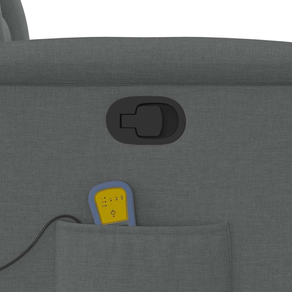 Asseyez-vous et laissez-vous aller dans ce fauteuil inclinable massant très confortable ! Fonction d'inclinaison manuelle : Ce fauteuil inclinable est doté d'une poignée sur le côté droit. Vous pouvez régler manuellement le repose-pieds et le dossier dans la position qui vous convient d'une simple traction sur la poignée. Cette fonction permet une inclinaison maximale de 135 degrés. De plus, le dossier peut revenir rapidement à sa position initiale d'une simple traction sur la poignée.Fonction de vibration : Les 6 points de massage vous permettent de bénéficier d'un massage plus ciblé. De plus, la télécommande incluse vous permet de choisir différents programmes de massage. La fonction de massage est alimentée par le connecteur USB, mais la source d'alimentation USB 5 V certifiée n'est pas incluse.Expérience d'assise confortable : L'assise, le dossier et les larges accoudoirs recouverts de tissu, au rembourrage épais, procurent une sensation de confort et de chaleur, vous donnant l'impression d'être bien en place. Le tissu, à l'aspect simple et épuré, est respirant et résistant.Cadre solide et stable : Le cadre en bois et en métal assure une structure solide et stable. Ce fauteuil inclinable est confortable et résistant.
