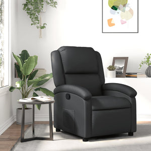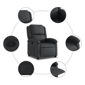 Asseyez-vous et détendez-vous dans ce fauteuil inclinable très confortable ! Fonction d'inclinaison manuelle : ce fauteuil inclinable est doté d'un bouton du côté droit. Vous pouvez régler manuellement le repose-pieds et le dossier dans n'importe quelle position selon votre confort en tirant simplement sur la poignée. Cette fonction permet une inclinaison maximale de 135 degrés. De plus, le dossier peut revenir rapidement à sa position d'origine en tirant simplement sur la poignée.Expérience de siège confortable : le siège, le dossier et les larges accoudoirs rembourrés épais recouverts de cuir véritable procurent une sensation confortable, vous faisant vous sentir enlacé lorsque vous êtes assis. Le cuir véritable est un matériau naturellement intemporel. Il peut durer toute une vie avec des soins et un entretien appropriés. La surface lisse lui donne également un aspect élégant tout en garantissant un confort optimal.Poche latérale pratique : ce fauteuil est doté d'une poche latérale pour vous permettre de garder vos objets essentiels à portée de main.Cadre solide et stable : le cadre en bois et en métal offre une structure solide et une grande stabilité. Ce fauteuil inclinable est confortable et durable.