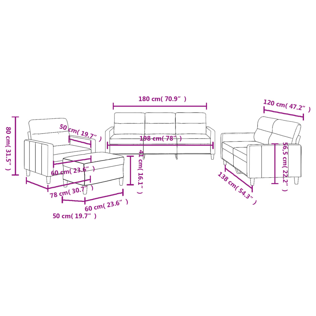Cet ensemble de canapés est un excellent endroit pour discuter, lire, regarder la télévision ou simplement vous détendre. Il est destiné à être un point central de votre maison. Tissu durable : le tissu présente un aspect simple et épuré tout en restant respirant et durable.Structure robuste et stable : la structure en contreplaqué et en métal du canapé assure robustesse et stabilité.Expérience d'assise confortable : le canapé est très confortable grâce au siège et aux accoudoirs épais et rembourrés.Pouf polyvalent : ce repose-pied convient pour reposer vos pieds lorsque vous êtes allongé dans un canapé, ou pour vous offrir un siège supplémentaire dans votre pièce. De plus, le design simple et la taille compacte le rendent idéal pour presque tous vos espaces de vie.