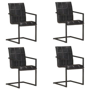 Chaises à manger cantilever lot de 4 noir cuir véritable