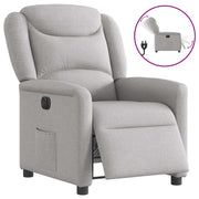 Asseyez-vous et détendez-vous dans ce fauteuil inclinable électrique très confortable ! Fonction d'inclinaison électrique : ce fauteuil inclinable est équipé d'un moteur électrique qui permet de régler automatiquement le repose-pied et le dossier dans n'importe quelle position, selon votre confort, en appuyant simplement sur le bouton situé sur le côté du fauteuil. Cette fonction permet une inclinaison maximale de 135 degrés. En outre, le dossier peut revenir automatiquement à sa position d'origine par une simple pression sur le bouton.Expérience d'assise confortable : le siège, le dossier et les larges accoudoirs bien rembourrés recouverts de tissu procurent une sensation confortable et chaleureuse, vous permettant de vous sentir enveloppé lorsque vous êtes assis. Le tissu présente un aspect simple et épuré et est respirant et durable.Poche latérale pratique : ce fauteuil est doté d'une poche latérale pour vous permettre de garder vos objets essentiels à portée de main.Cadre solide et stable : le cadre en bois et en métal offre une structure solide et une grande stabilité. Ce fauteuil inclinable est confortable et durable.