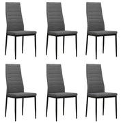 Cet ensemble de 6 chaises à manger, au design épuré et contemporain, s'intégrera parfaitement dans tous les intérieurs. Les chaises sont dotées d'un cadre en acier robuste et sont revêtues d'un tissu en polyester de haute qualité, doux et durable. Grâce à l'assise et au dossier épais, ainsi qu'au design ergonomique, ces chaises à manger sont très confortables. Les chaises sont faciles à assembler. La livraison comprend 6 chaises de salle à manger.