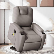 Asseyez-vous et détendez-vous dans ce fauteuil inclinable de massage très confortable ! Fonction de levage électrique : ce fauteuil inclinable pour personnes âgées est équipé d'un moteur électrique pour la fonction de levage. Grâce à la fonction qui pousse toute la chaise vers le haut, vous pouvez facilement vous tenir debout sans stresser votre dos et vos genoux en appuyant simplement sur le bouton.Fonction d'inclinaison manuelle : ce fauteuil inclinable est doté d'une poignée du côté droit. Vous pouvez régler manuellement le repose-pieds et le dossier dans n'importe quelle position selon votre confort en tirant simplement sur la poignée. Cette fonction permet une inclinaison maximale de 135 degrés. De plus, le dossier peut revenir rapidement à sa position d'origine en tirant simplement sur la poignée.Fonction de vibration : les 6 points de massage vous permettent de faire l'expérience d'un massage mieux ciblé. De plus, la télécommande incluse vous permet de choisir différents programmes de massage. La fonction de massage est alimentée par le connecteur USB qui nécessite une source d'alimentation USB certifiée de 5 V (non fournie).Expérience d'assise confortable : le siège, le dossier et les larges accoudoirs bien rembourrés recouverts de tissu procurent une sensation confortable et chaleureuse, vous permettant de vous sentir enveloppé lorsque vous êtes assis. Le tissu présente un aspect simple et épuré et est respirant et durable.Porte-gobelets et poche latérale pratiques : ce fauteuil dispose de deux porte-gobelets pratiques pour vos boissons et d'une poche latérale pour votre télécommande ou pour garder vos objets essentiels à portée de main.Cadre solide et stable : le cadre en bois et en métal offre une structure solide et une grande stabilité. Ce fauteuil inclinable est confortable et durable.