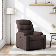 Asseyez-vous et détendez-vous dans ce fauteuil inclinable très confortable ! Fonction d'inclinaison manuelle : ce fauteuil inclinable est doté d'une poignée du côté droit. Vous pouvez régler manuellement le repose-pieds et le dossier dans n'importe quelle position selon votre confort en tirant simplement sur la poignée. Cette fonction permet une inclinaison maximale de 135 degrés. De plus, le dossier peut revenir rapidement à sa position d'origine en tirant simplement sur la poignée.Expérience d'assise confortable : le siège, le dossier et les larges accoudoirs bien rembourrés recouverts de tissu procurent une sensation confortable et chaleureuse, vous permettant de vous sentir enveloppé lorsque vous êtes assis. Le tissu présente un aspect simple et épuré et est respirant et durable.Porte-gobelets et poche latérale pratiques : ce fauteuil dispose de deux porte-gobelets pratiques pour vos boissons et d'une poche latérale pour garder vos objets essentiels à portée de main.Cadre solide et stable : le cadre en bois et en métal offre une structure solide et une grande stabilité. Ce fauteuil inclinable est confortable et durable.